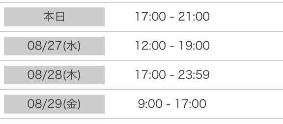 今日は17時から21時です?