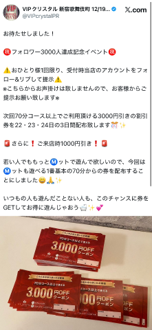 お店の公式Xフォロー&リプライしたあとに今日か明日までに受付で提示したら次回使える3000円オフクーポン配布中です???