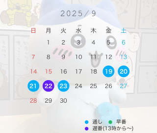 10月は下旬頃出勤予定です。